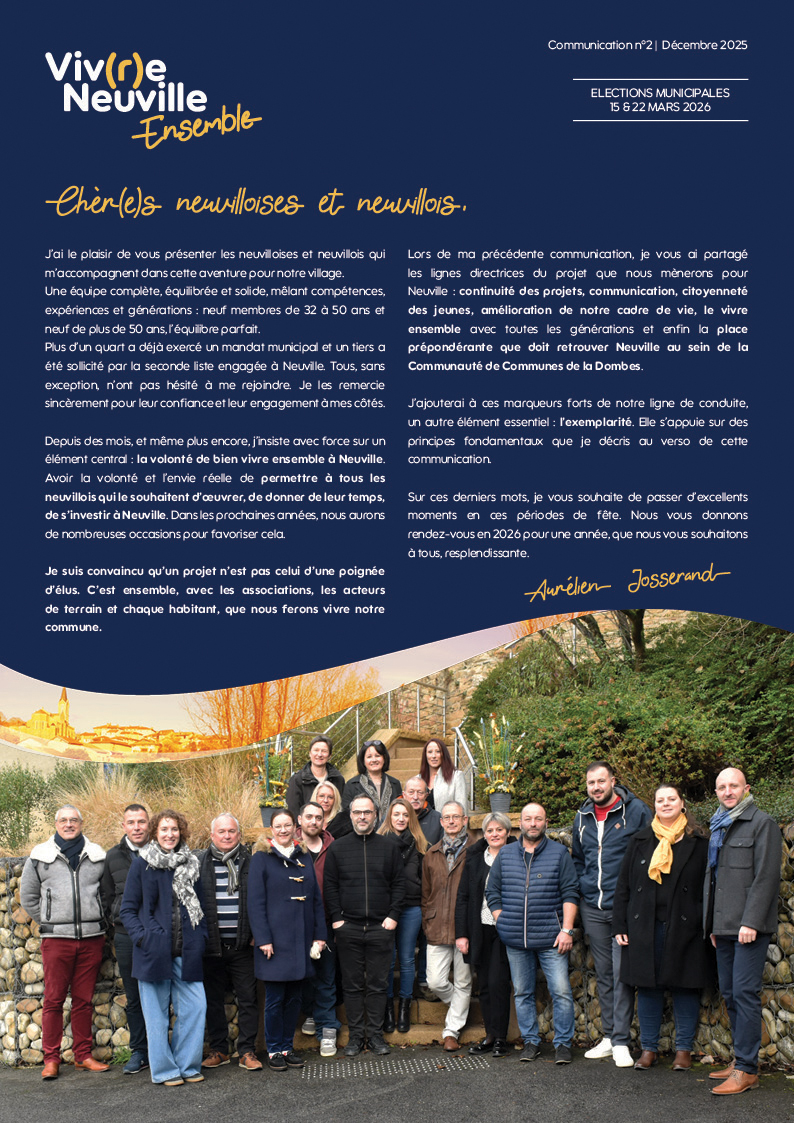 Notre choix est clair pour l’avenir de Neuville : nous choisissons l’unité, le dialogue et le bon sens.